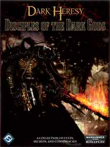Disciples of the Dark Gods Dark Heresy Warhammer 40,000 Role PlayFormat: HardCoverFantasy Flight Games Version - Newest Printing A collection of Cults, Secrets, and Conspiracies Dark conspiracies, blasphemous cults, and corrupting chaotic powers are ever present threats to the Imperium. Yet searching out such hidden horrors is the task of the Inquisition, for who else will save mankind from these threats? Disciples of the Dark Gods features in-depth descriptions of a variety of cults, organizations, and factions for Acolytes and Inquisitors to infiltrate and expose. Plus backgrounds on internal feuds, factionalism, and personal rivalries that constantly threaten to weaken the God-emperor’s domain. Wanted Heretics of the Calixis Sector: Complete descriptions of eight of the most notorious and dangerous villains at large and declared Excommunicate Tratoris. The House of Dust and Ash—a scenario for experienced Acolytes with an exciting mix of action, horror, and investigation. Not for the faint-hearted! A copy of the Dark Heresy Core Rulebook is needed to use this supplement. See Also